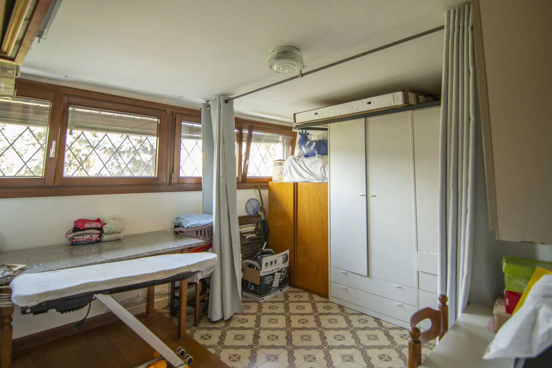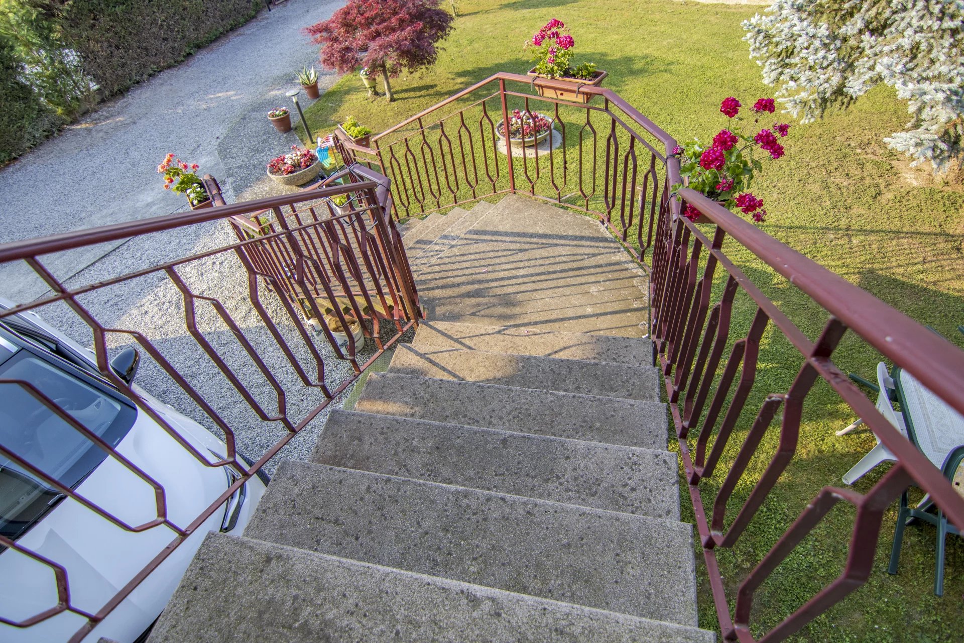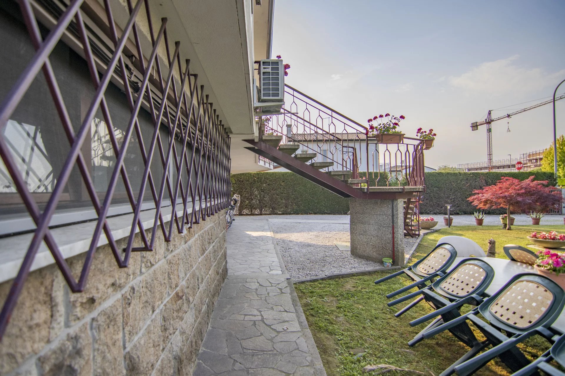 Al piano terra troviamo una spaziosa taverna, ideale per cene in compagnia o per creare uno spazio indipendente per figli grandi, ospiti o genitori. C’è una stanza multiuso, un locale attualmente adibito a studio, un bagno finestrato ristrutturato di recente, lavanderia, locale tecnico e garage. L’altezza interna di questo piano è di 2,20 metri e comunica direttamente con il giardino privato di circa 550 mq disposto sui quattro lati della casa.