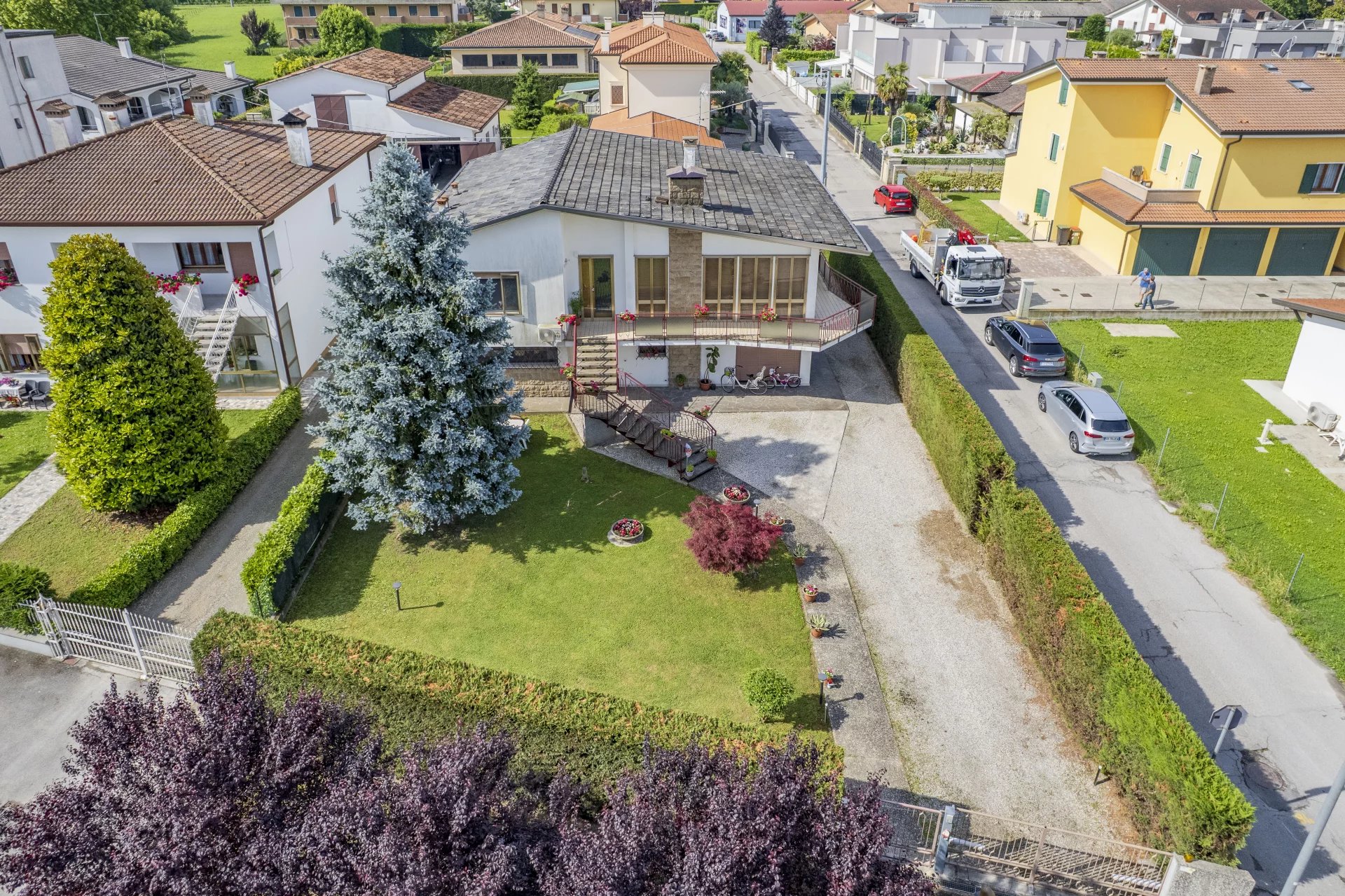 Siamo lungo la via principale del paese, a soli 150 metri dal supermercato e comodissimi al centro e a tutti i servizi. Ti presentiamo una villa singola disposta su due livelli fuori terra, perfetta per chi cerca metrature importanti e una casa pronta da vivere, ma anche personalizzabile nel tempo.