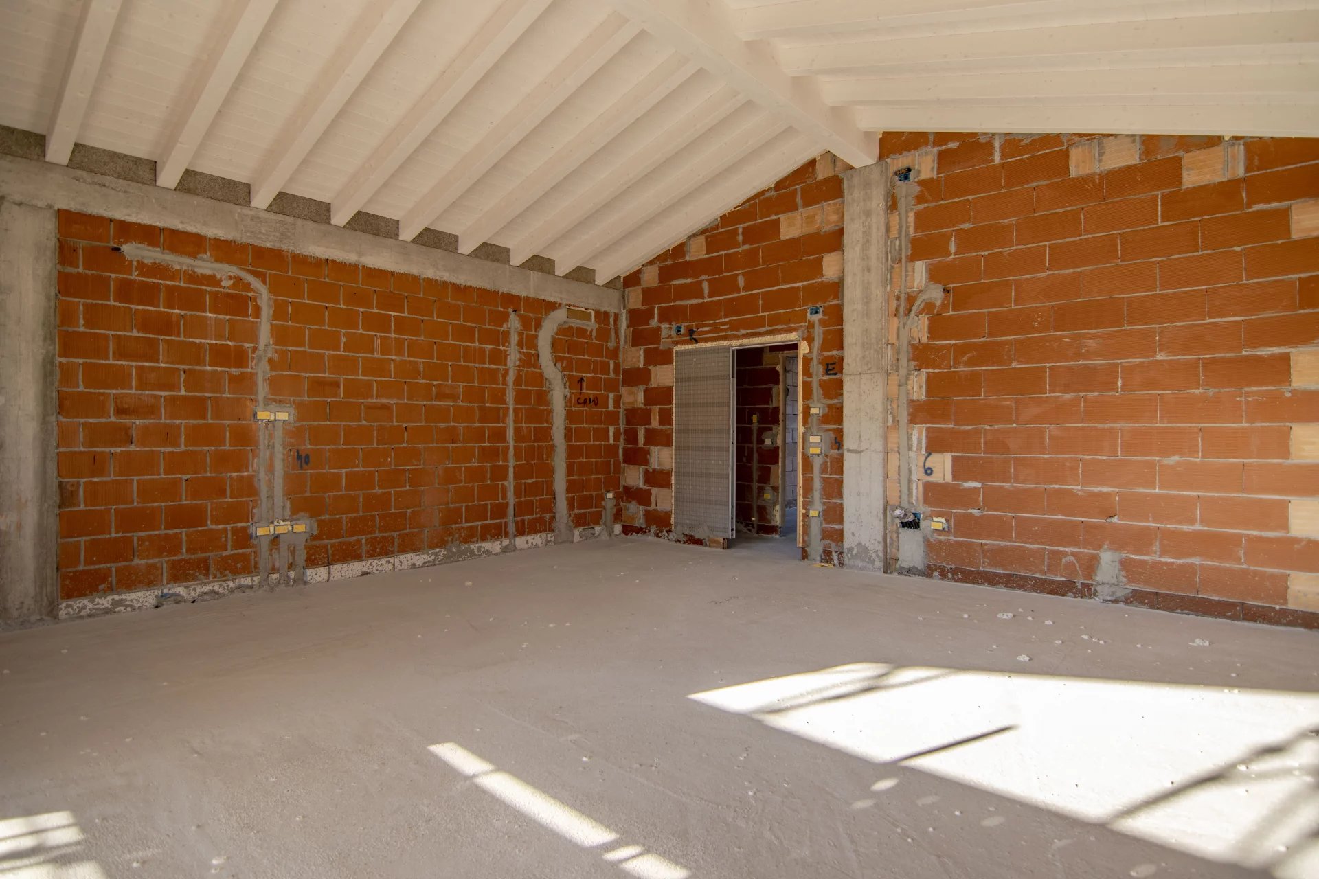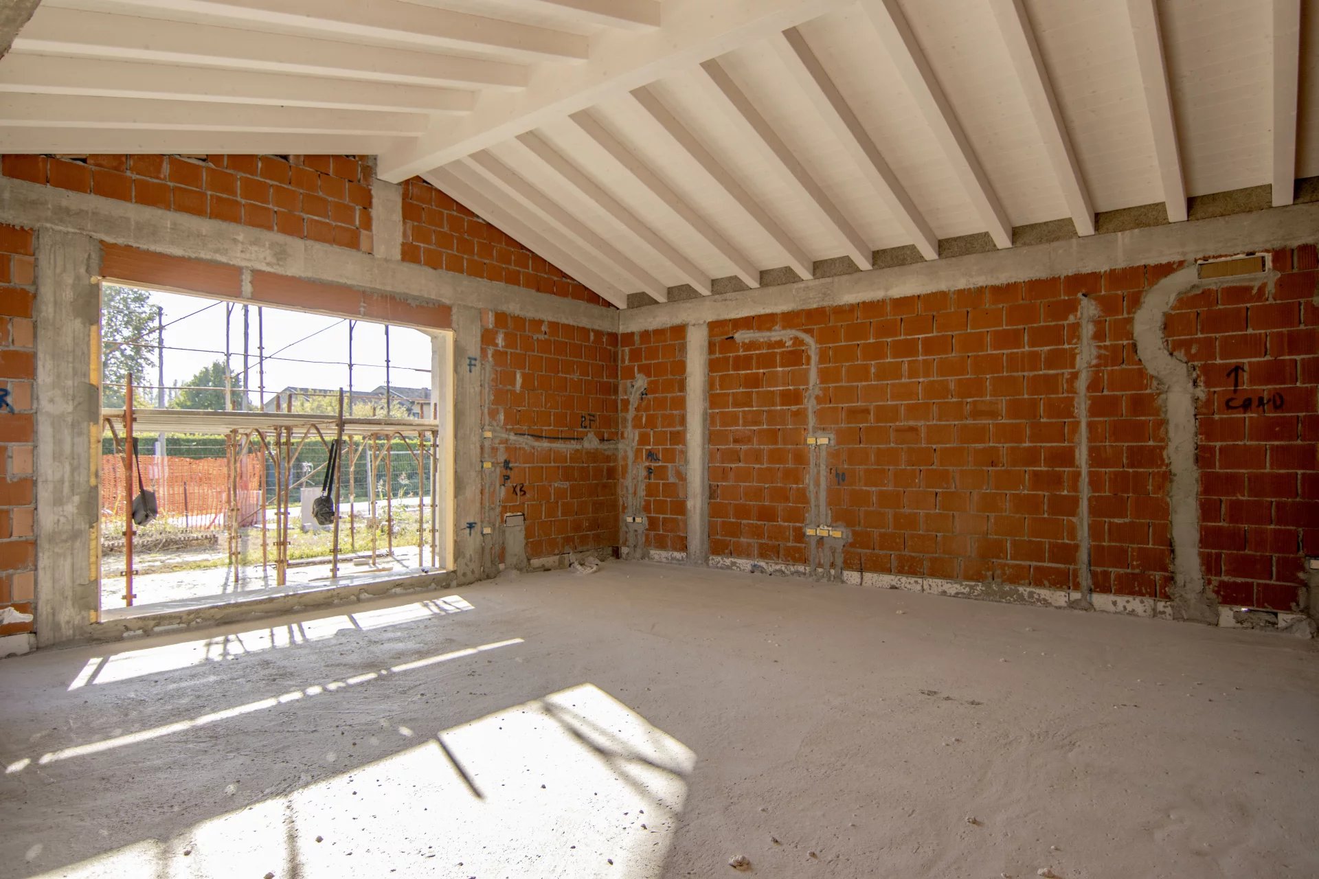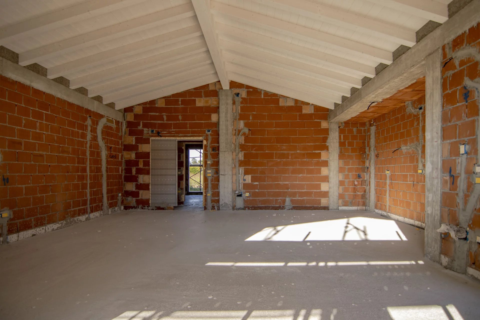 Gli interni, moderni e accoglienti, offrono un’ampia zona giorno open space di oltre 50 mq, caratterizzata dalla travatura a vista con travi bianche, che impreziosisce l’ambiente e ne esalta la luminosità, con un’altezza massima di 3,80 metri. La zona notte comprende tre camere da letto, doppi servizi e un garage comunicante direttamente con l’abitazione.