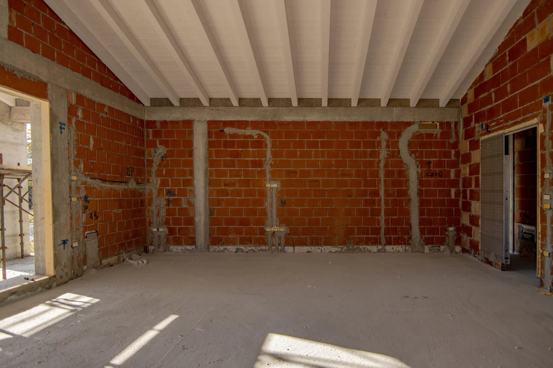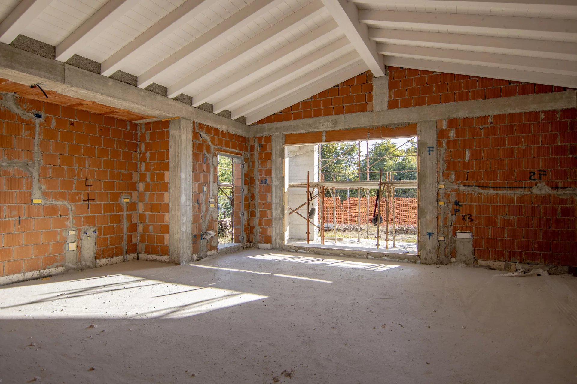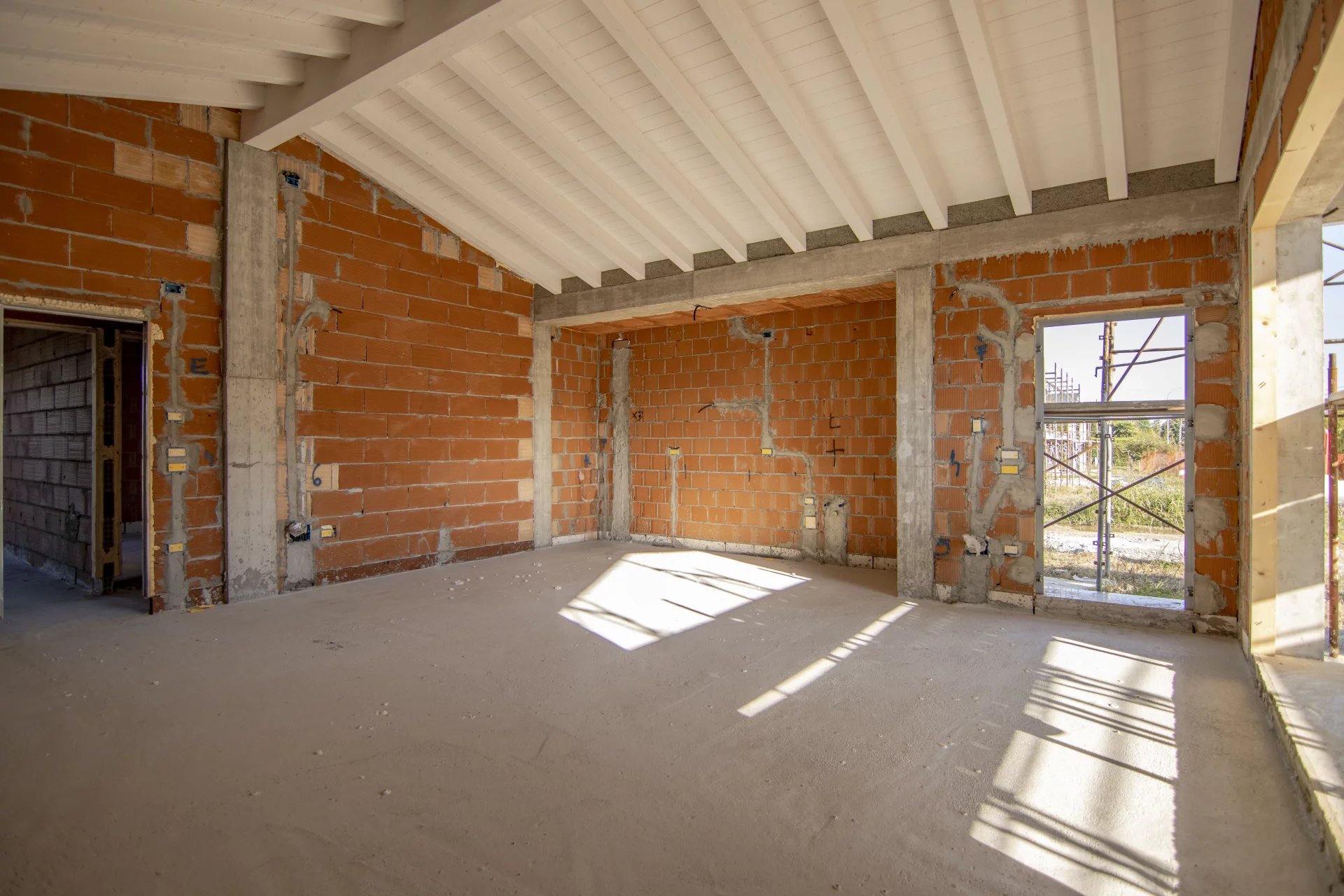 Gli interni, moderni e accoglienti, offrono un’ampia zona giorno open space di oltre 50 mq, caratterizzata dalla travatura a vista con travi bianche, che impreziosisce l’ambiente e ne esalta la luminosità, con un’altezza massima di 3,80 metri. La zona notte comprende tre camere da letto, doppi servizi e un garage comunicante direttamente con l’abitazione.
