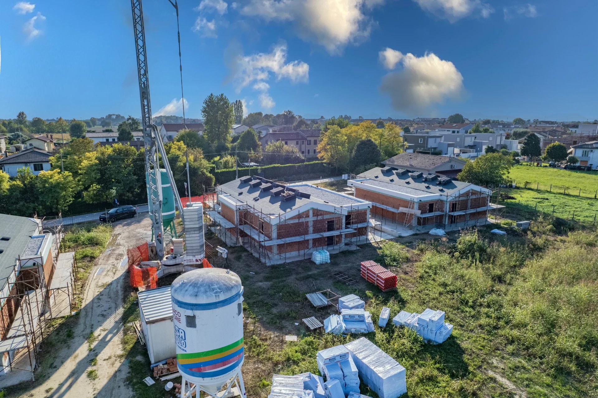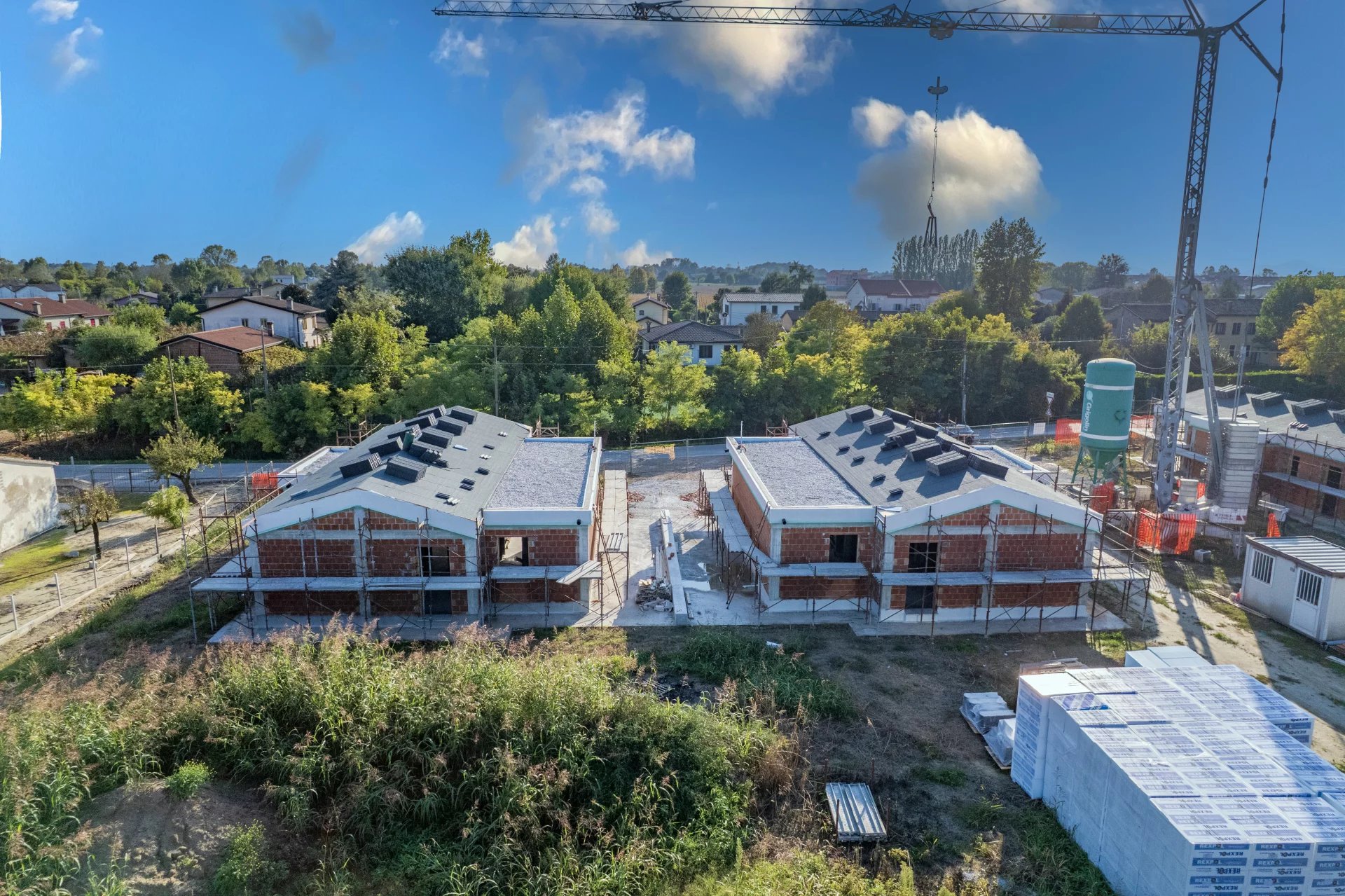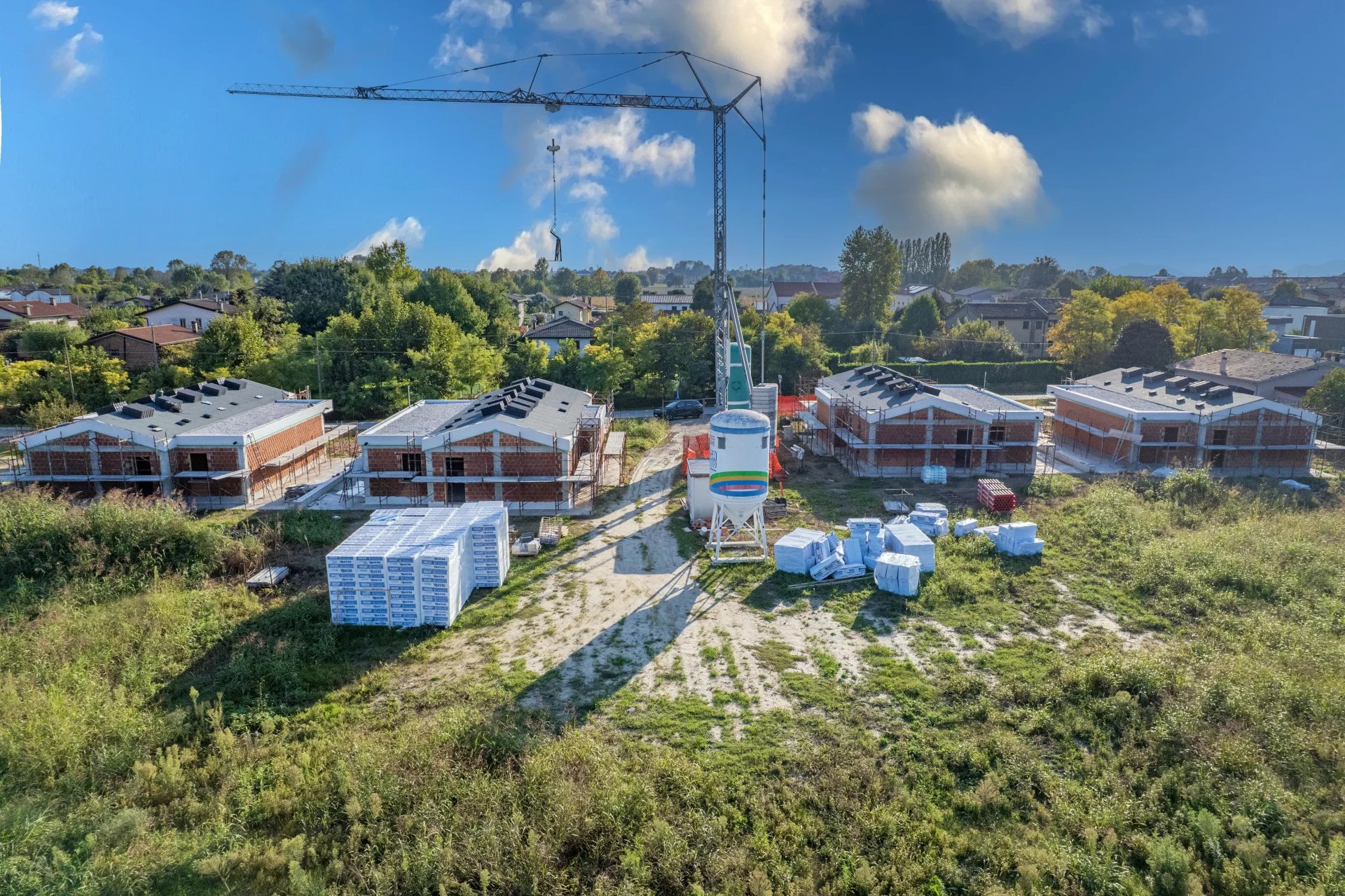 Sul piano tecnico, queste villette rappresentano l’eccellenza della nuova edilizia in classe energetica A4: riscaldamento a pavimento, pompa di calore Daikin, ventilazione meccanica controllata con recupero di calore, impianto fotovoltaico da 8,8 kW autonomo per ciascuna unità e assenza totale di gas.