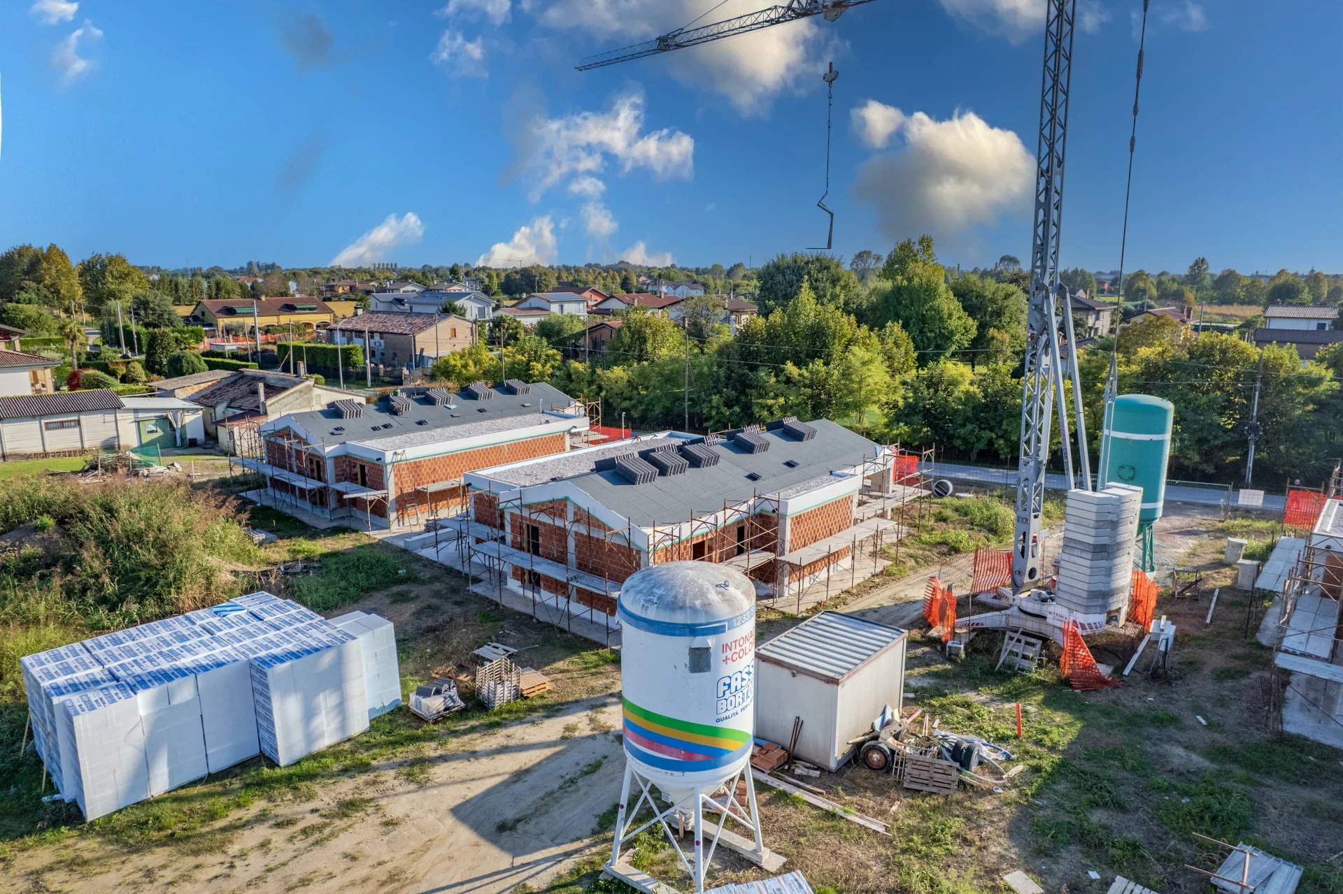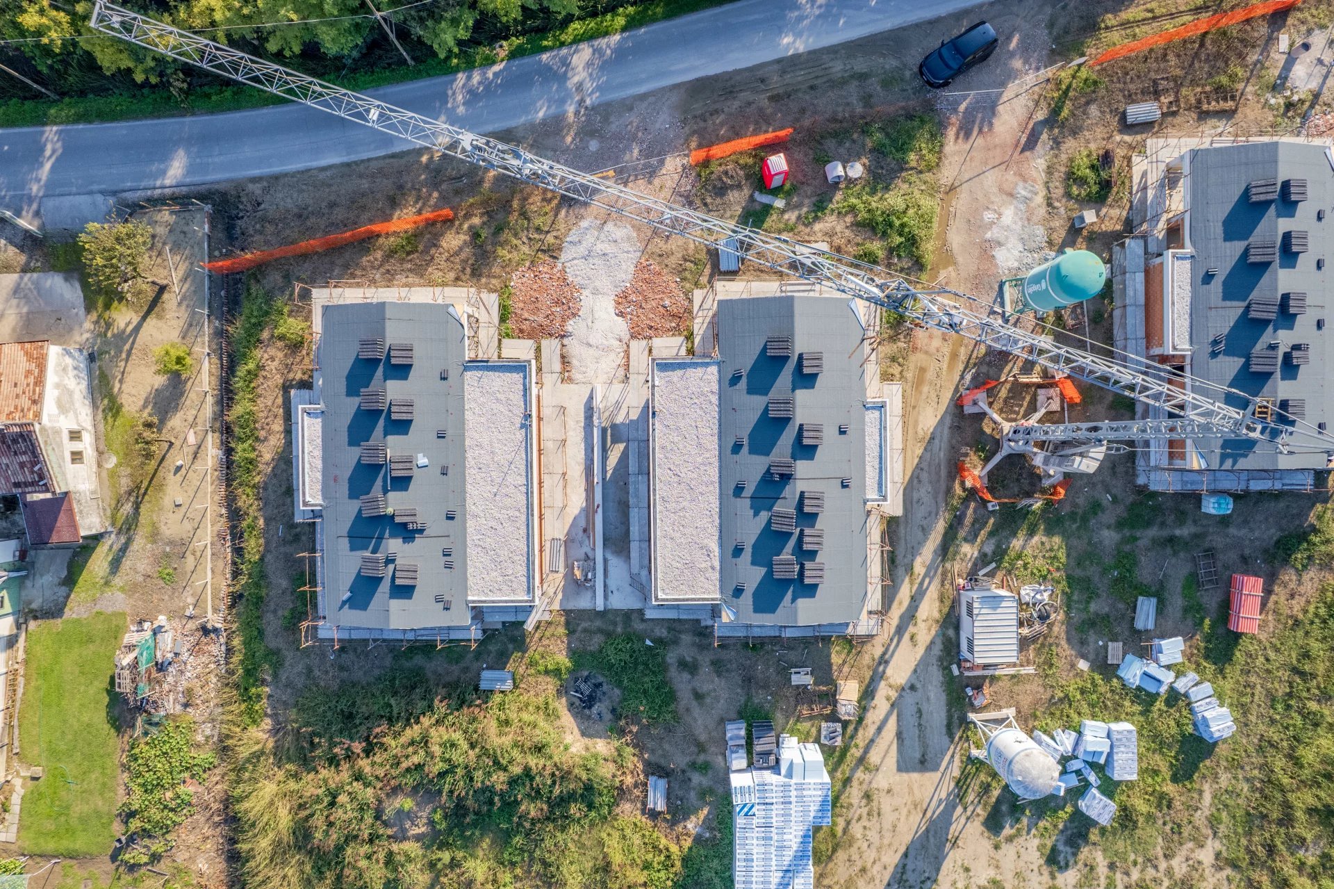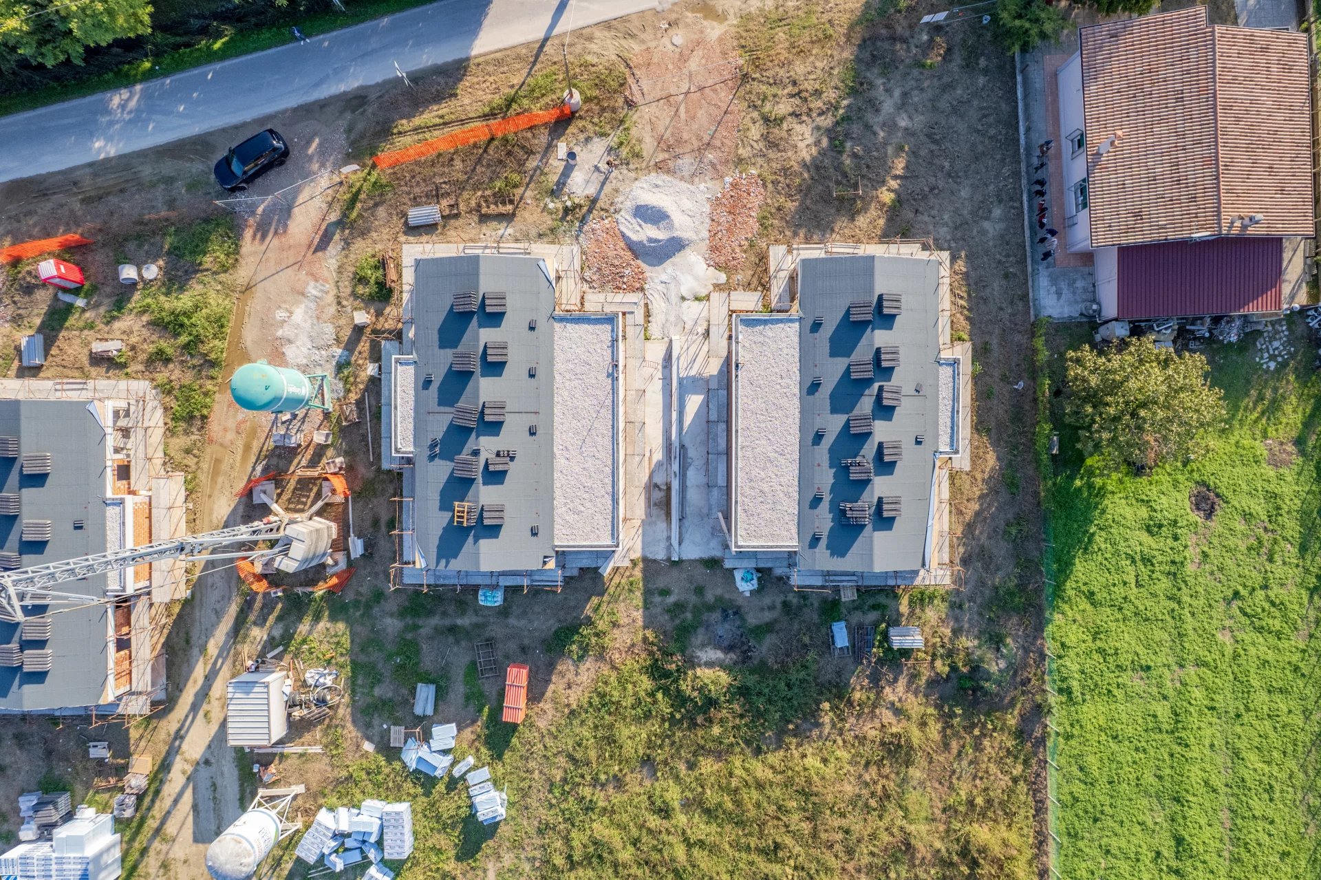 Sul piano tecnico, queste villette rappresentano l’eccellenza della nuova edilizia in classe energetica A4: riscaldamento a pavimento, pompa di calore Daikin, ventilazione meccanica controllata con recupero di calore, impianto fotovoltaico da 8,8 kW autonomo per ciascuna unità e assenza totale di gas.