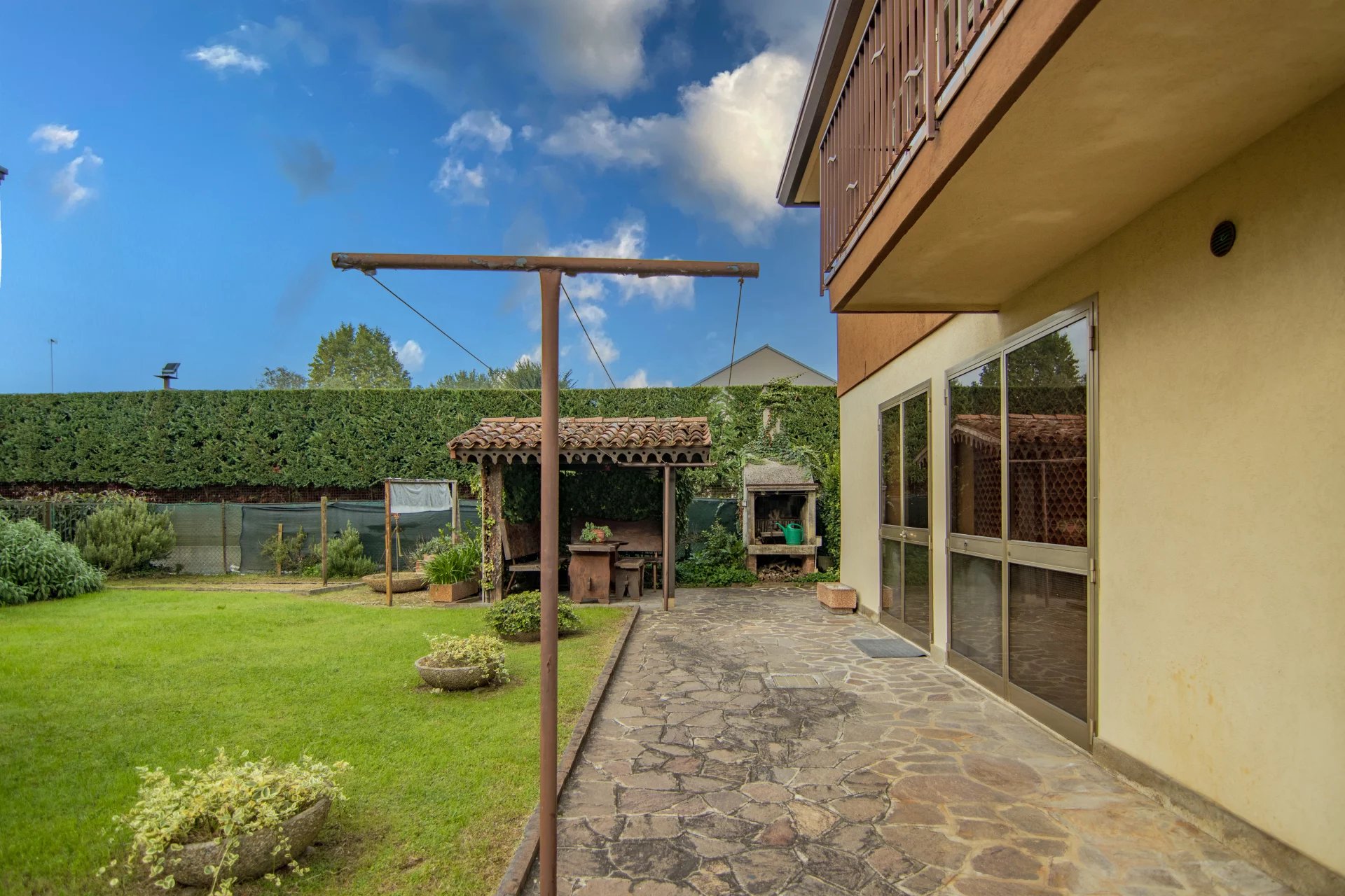 La casa si sviluppa su due livelli e offre una superficie complessiva di 230 mq. Al piano terra si viene accolti da un ampio ingresso verandato di circa 30 mq, facilmente sfruttabile come secondo salotto, studio o area hobby. Sempre al piano terra si trovano una spaziosa taverna, un locale tecnico, un bagno di servizio e un comodo garage collegato direttamente all’abitazione. Il giardino, di circa 400 mq, circonda la casa su più lati, garantendo privacy e possibilità di utilizzo in ogni stagione.
