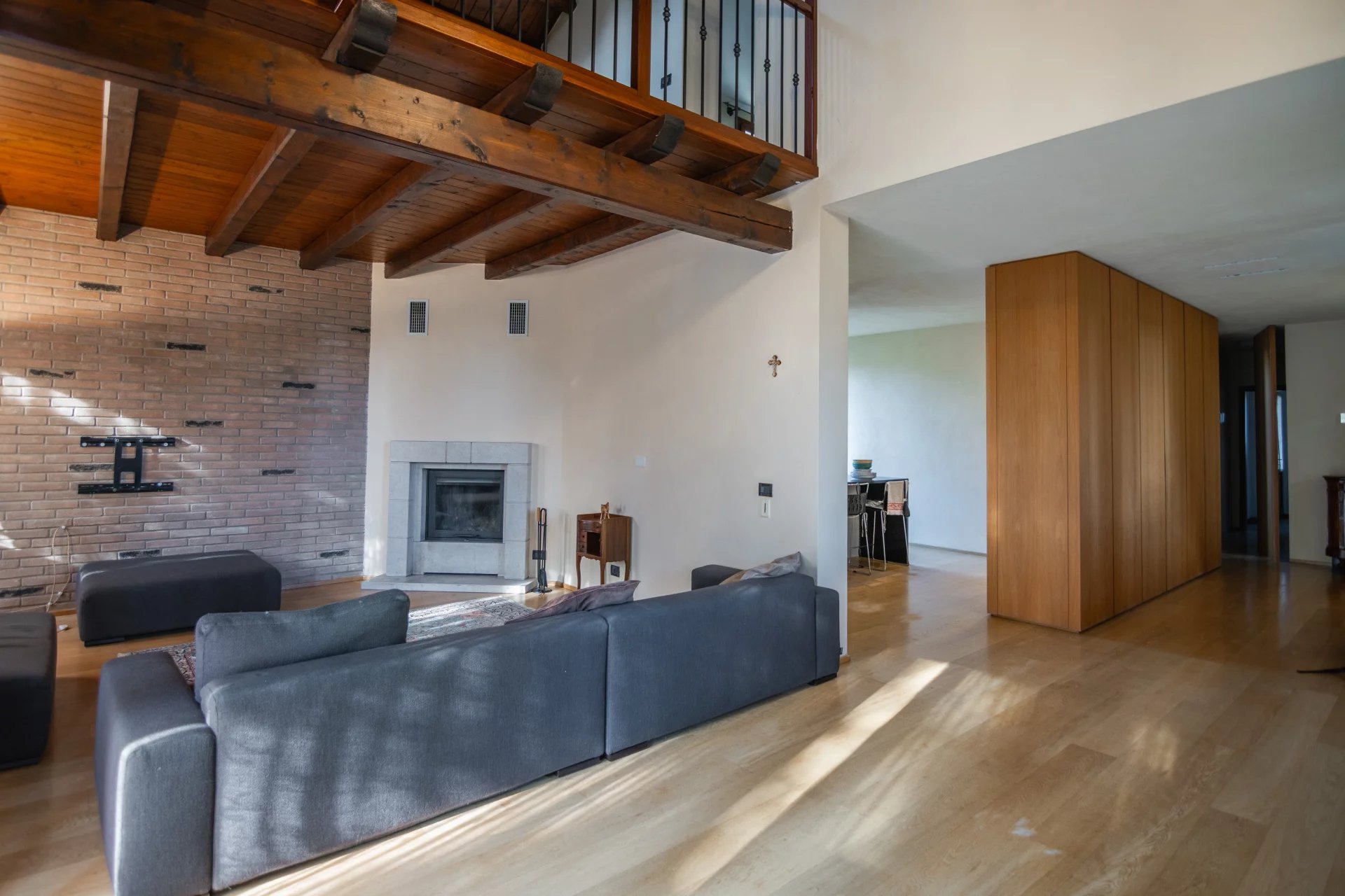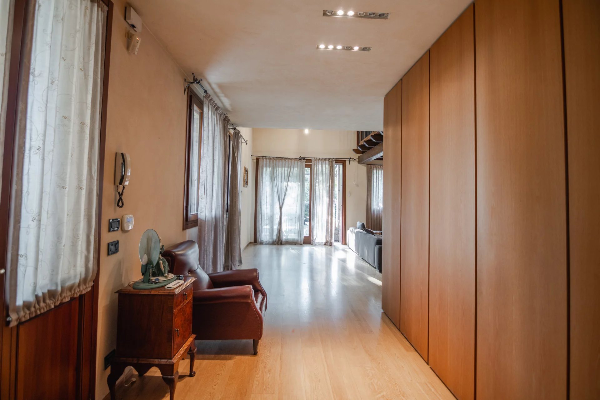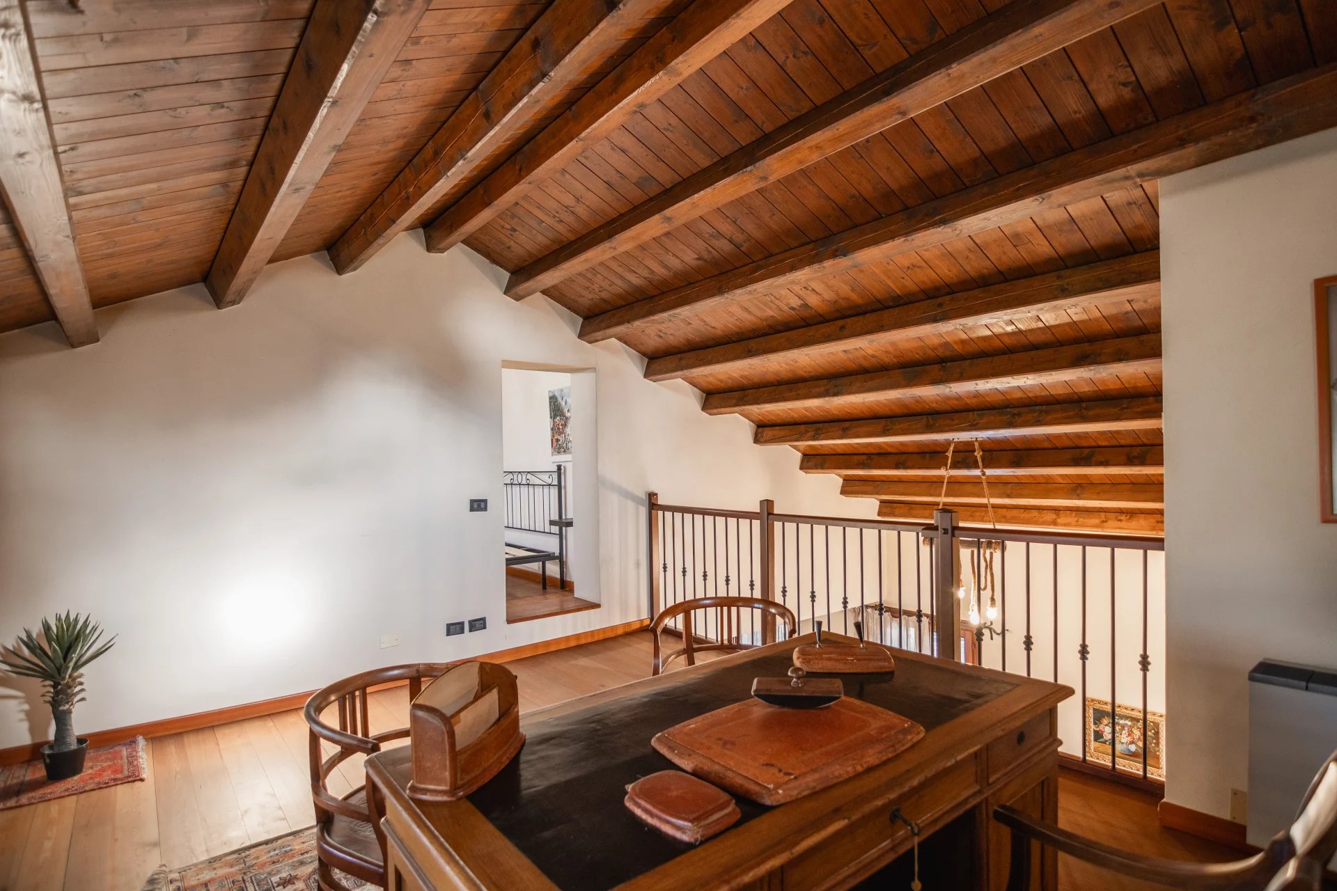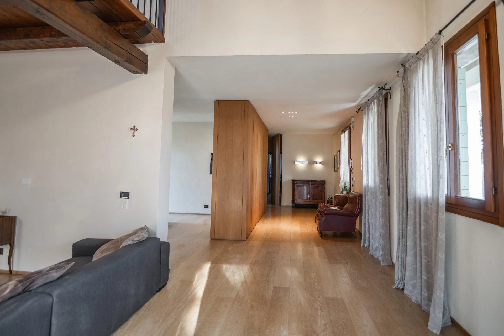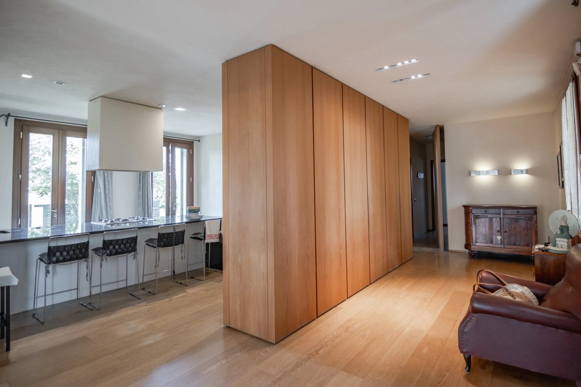 Gli ambienti sono stati studiati nei minimi dettagli: armadiature su misura per dividere gli spazi in modo fluido, illuminazione progettata per valorizzare ogni ambiente, e accesso ottimizzato al soppalco, che rappresenta uno degli angoli più suggestivi della casa. Le finiture sono di ottimo livello, il design complessivo trasmette calore e personalità, e l’intera abitazione risulta perfettamente mantenuta.